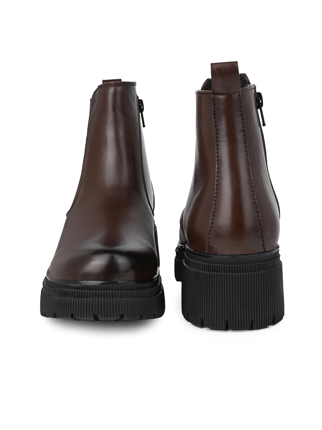 Step into bold fashion with these women’s Chelsea boots featuring a chunky sole and a trendy, modern design. Built for both style and comfort, these boots combine a sleek upper with a sturdy sole that adds height, grip, and a fashionable edge. Perfect for elevating any casual or party look.